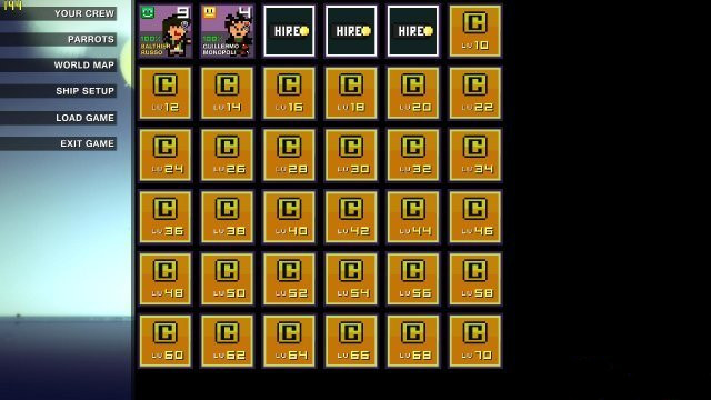 不足的地方就是玩家扮演的海盗船长以及船员们都非常小,仅仅用了数量很少的像素点来表示,基本上看不到任何细节,也很容易搞混,能够体现出的动作也非常的有限。当然这一部分是介于像素类游戏本身的局限,不过笔者还是希望能够在后续的版本中看到这方面的改进。另外一点就是场景的重复,可以考虑到游戏本身的完成度不高,这个问题很有可能在完整版中得到解决。