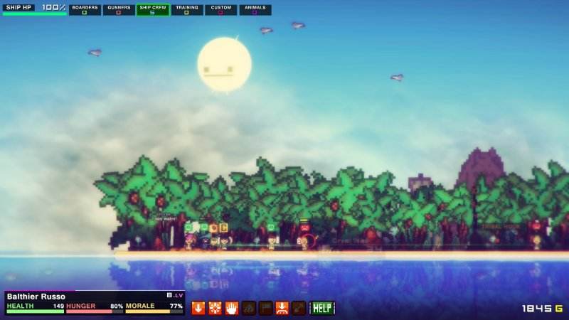 虽然本作是一款2D像素类游戏,但是并不像当前大热的一些游戏有着超高的自由度,游戏中能够做的事情不少,但自由度有限。玩家所控制的船长以及船员的成长是非常自由的,从加点到装备的选择,还有技能的学习。