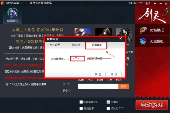 5.自动转盘,人物面向转盘,勾选功能后,切回游戏,按下启动键F7,开始连续转盘