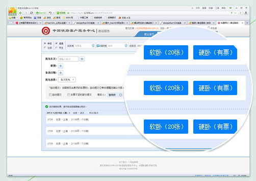 由于12306订票网站流量巨大,网络拥堵,登录缓慢,且车票一经放出短短几分钟就被一抢而空。为此,hao123推出了春运抢票浏览器,被网友热捧为“抢票神器"。其原理在于能够记录个人信息,自动重复登录,直到登录成功,代替缓慢的人工操作。并通过对12306网站的不断刷新和监控,一旦有人退票,该抢票神器能立即发现。此外,hao123抢票浏览器从查询到下单可以直接勾选,不需再填写任何信息,有了这些便利功能,抢票成功率将提高10倍以上。