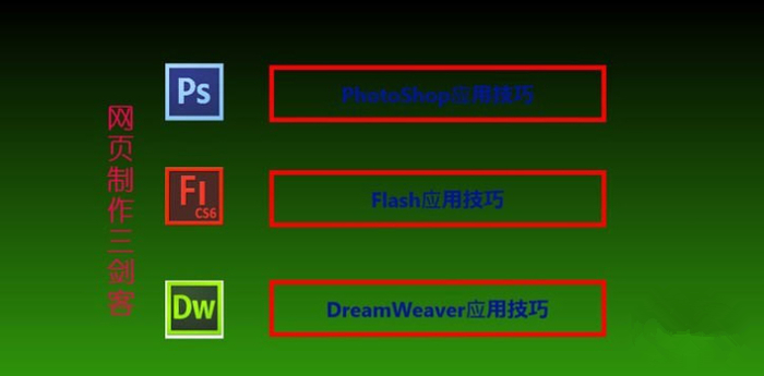 网页三剑客,是一套强大的网页编辑工具,最初是由Macromedia公司开发出来的。由Dreamweaver,Fireworks,Flash三个软件组成,俗称网页三剑客。Dreamweaver 是一个“所见即所得”的可视化网站开发工具,主要用于动态网页和静态网页的开发;Fireworks主要是用于对网页上常用的jpg、gif的制作和处理,也可用于制作网页布局;Flash主要用来制作动画,现推出Flash平台,可预见有极好的前景。