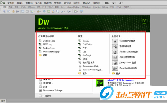 一、网页三剑客绿色版如何进行首页项选择?1、双击点开网页三剑客绿色版软件,会有一个缓冲,然后进入软件的首页面。可以看到菜单栏,和之间建过的网页。