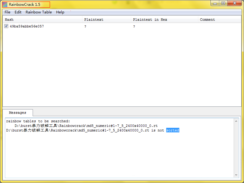 由于rainbowcrack是一个多功能的密码破解器,因此提示信息比较复杂,