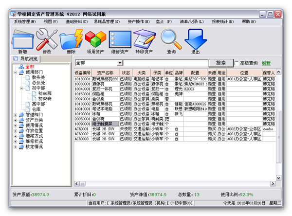 学校固定资产管理软件 v2014版本更新:修正了若干报表BUG!