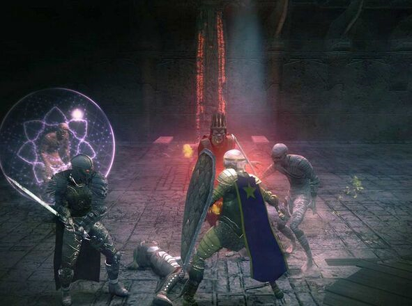 Keep:遗址的主要部分目前被食人魔法师佔据着,你只能一路杀到顶层。最后藏有凋像的房间被一面没有锁眼的门封闭着,每次试图开门都会受到严重伤害,但每次门上的魔力都会削弱一点。试着开六七次之后,魔力将完全消失,主角就可以进去完成这部分的仪式。