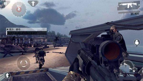游戏的操作方面还是和Gameloft以往的作品类似,使用了虚拟摇杆加按键的形式进行操作,同时玩家还可以启动陀螺仪进行辅助瞄准。在瞄准系统下,玩家的准心会自动锁定住较近的敌人,来降低玩家瞄准的难度,这个设定对于使用掌上设备玩FPS游戏的玩家来说是十分必要的,同时厂商很好的权衡了自动标准和手动标准之间的平衡,既降低了玩家游戏的难度,也最大化的保留了操作的乐趣,让玩家有操作瞄准爆头敌人的快感。