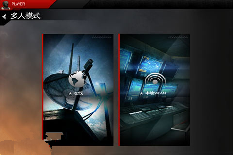 “在线”模式可以和世界各地的Gameloft玩家战斗。“本地WLAN”则是可以通过WLAN,与朋友在本地局域网战斗。玩过CS或者DOTA等竞技游戏的同学应该已经很熟悉这些模式。