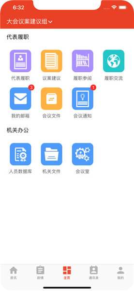 3.建议:内容主要包括代表提交大会议案、建议,查询建议,满意度的测评,可以通过手机端提交建议,并能掌握自己的建议办理进程;
