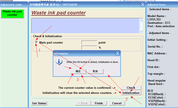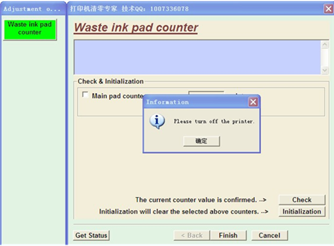 6.[plese turn off the printer] 关闭打印机,然后点击[确定],接着点[确定]。