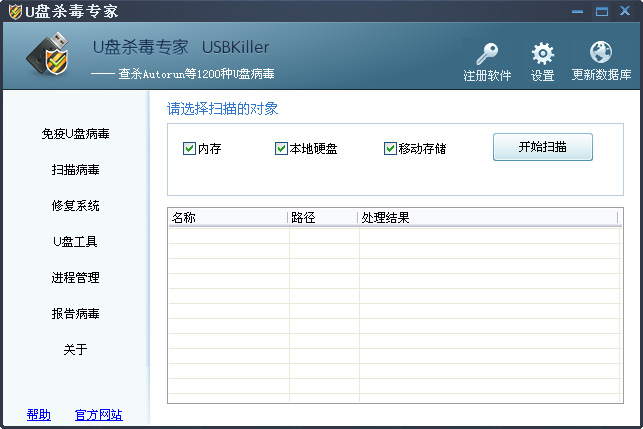 U盘杀毒专家可将遗留在电脑和U盘等移动存储设备中的U盘病毒,彻底的查杀,并会显示查杀结果。