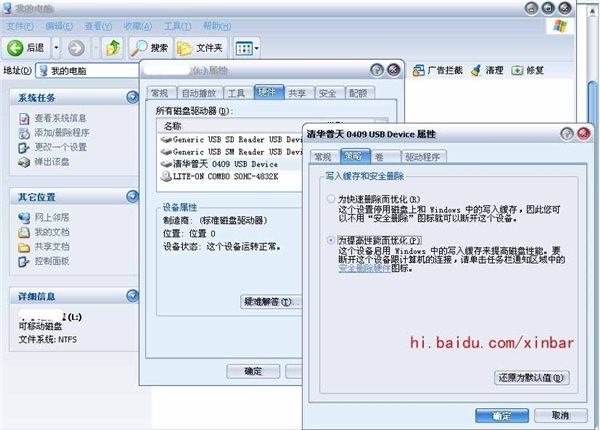 4. 经过试验发现,该U盘换到另一台机子可以正常使用,说明故障不在U盘本身,而在那台机器上。这时对U盘进行格式化、转换格式等操作都不会起作用。