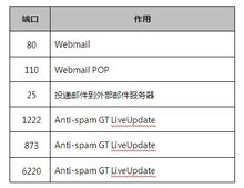 除此以外,Coremail邮件系统还需要访问以下端口,以获得包括反垃圾邮件系统的特征库升级在内的功能(此功能为增值功能),因此请开通服务器以下对外的端口访问(OUTPUT):
