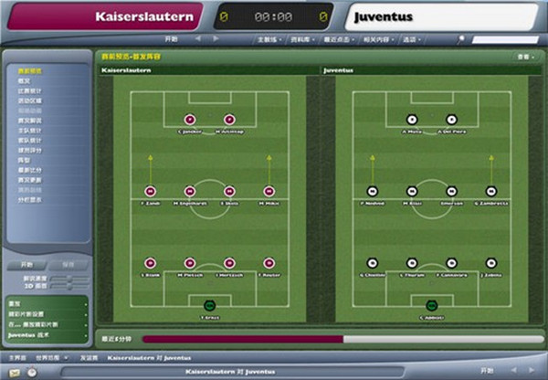 选项有四栏大框,从上至下分别是[球队信息/训练][转会事宜][杯赛情报][退出/设定/帮助],其中第一、二、四项可以对比06汉化的结果,完全是一样的,功能也就清楚了,第三项杯赛中有几项杯赛目录,是新加的成份,终于可以在欧洲赛场一展拳脚了!