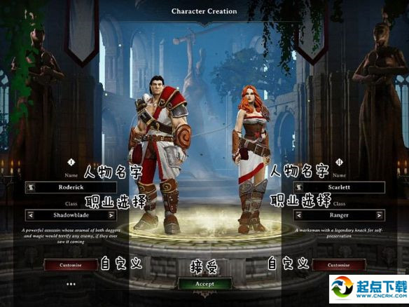 首先两位主角罗迪克和斯嘉丽的名字都可以由玩家自行创建,只要在名字框当中输入即可。