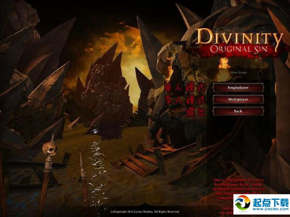 随后就是进入到《神界3:原罪》的主菜单当中,第一项是“继续游戏”(如果初次游戏,此位置为灰色,无法按动。以后进行游戏都从这儿进入)、第二项是“新游戏”(开启新游戏都从这儿进入);