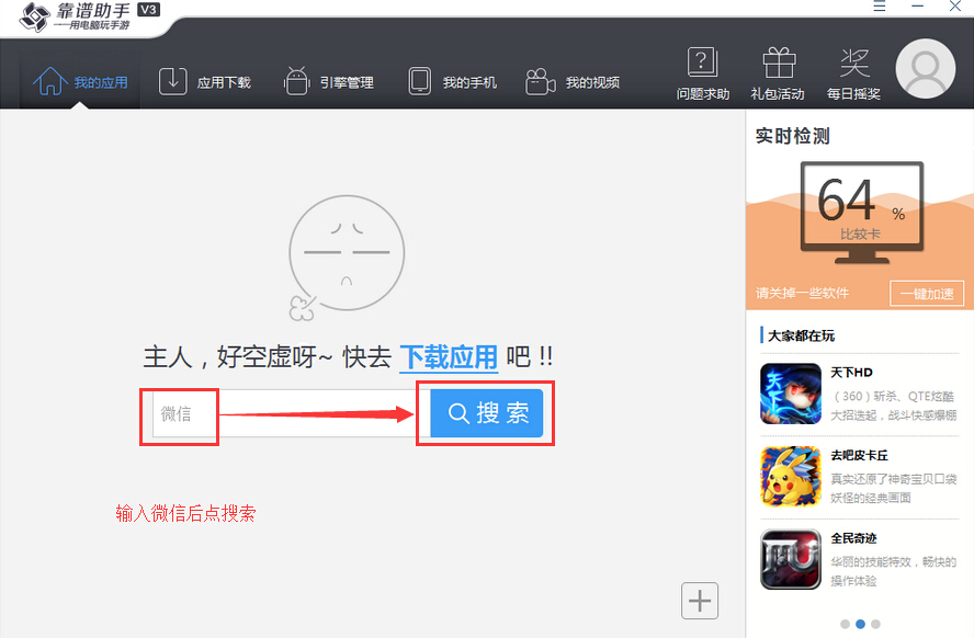 第四步、连接好之后,即可点击【下载】你想要在电脑上网的app/游戏;