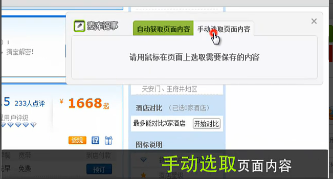 可以选择手动选取页面内容