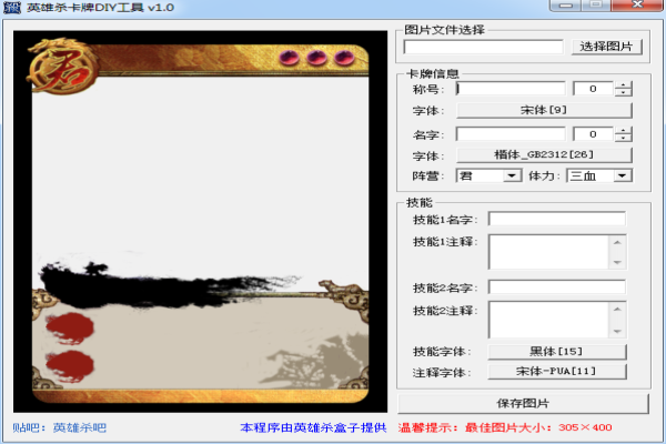 英雄杀卡牌DIY工具V1.0更新日期:2014-05-21.界面简单实用