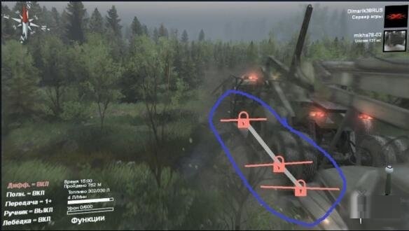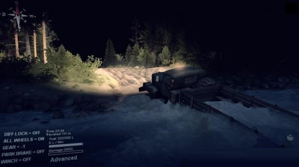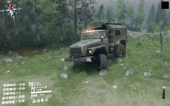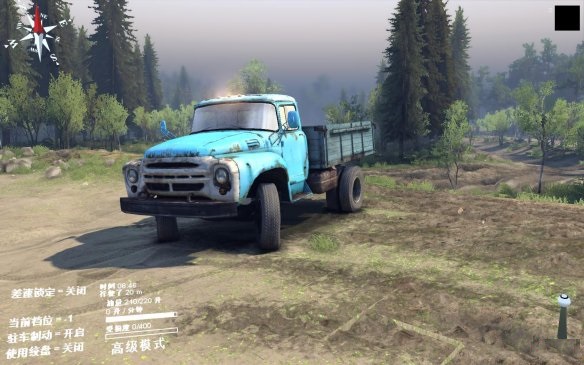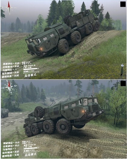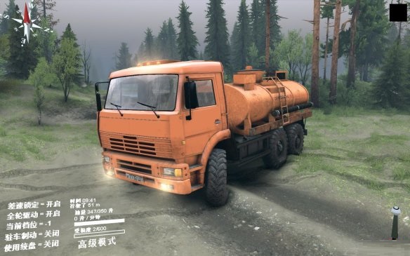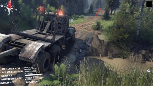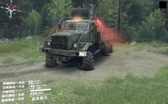 就像之前发的那张车库门口刨坑的图一样,玩家在不了解差速锁和全驱动的情况下就去开车肯定四处深陷。怎么能够车辆不至深陷泥地呢?理论很复杂,操作很简单,按Q和E键把差速锁和全驱动打开就行,这样车辆就能有足够的摩擦力通过这些复杂地段。