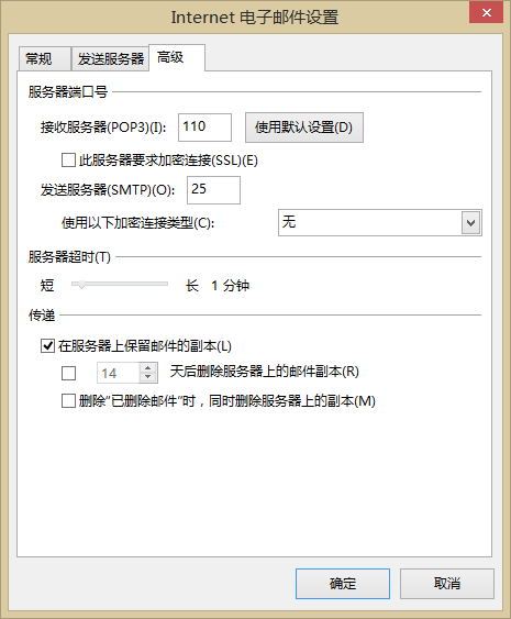 6.点击“其他设置”--“高级”,勾选“在服务器上保留邮件的副本。
