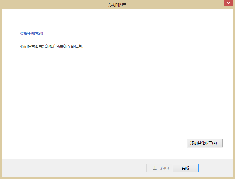 7.点击“其他设置”窗口的确定,回到了“电子账户”窗口,点击“下一步”,然后点击“完成”即可完成配置。