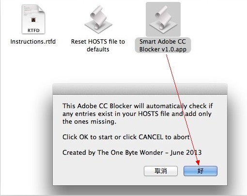 重要:此时一定要运行 破解包 Adobe CC crack kit 1.0 里面的 Smart Adobe CC Blocker v1.0 文件,如图