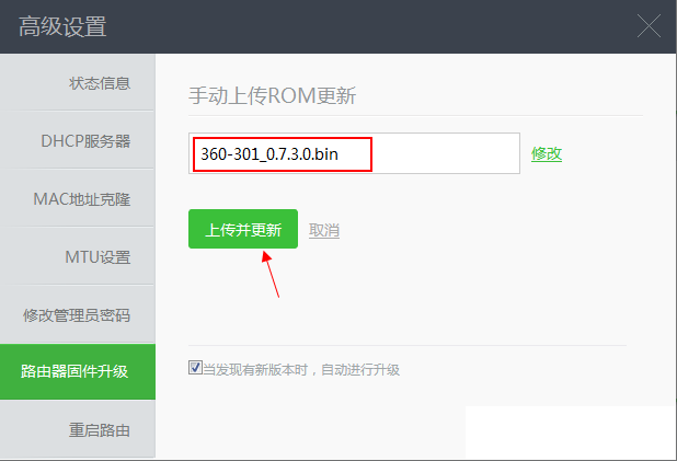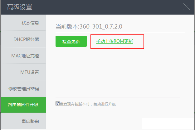 2)web页面升级方法:点击高级设置——路由器固件升级,如下图所示