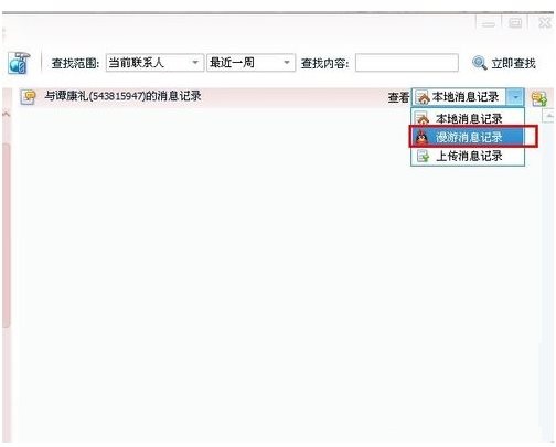 开始的方法都差不多,知道打开信息管理器页面。然后在右上角有一个查看的选择,这里选择漫游消息记录!