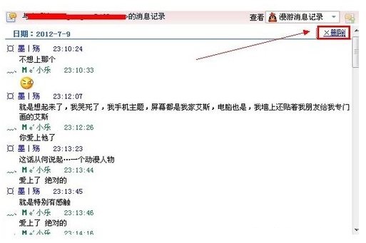 然后在漫游的聊天记录里面会看到每天的漫游聊天记录,这个只能按天删除了,删除之后便永远的删除了聊天记录了。不过要一天一天的删除,有点小麻烦,