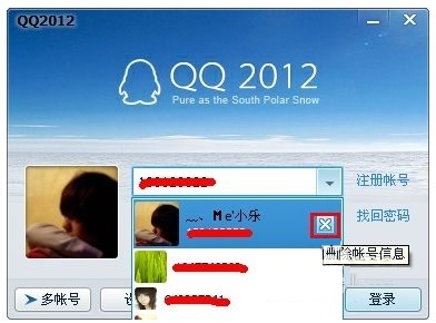 打开QQ登录窗口。然后选择你要删除聊天记录的QQ号,在点击QQ号的时候后面会有一个小叉叉按钮。点击
