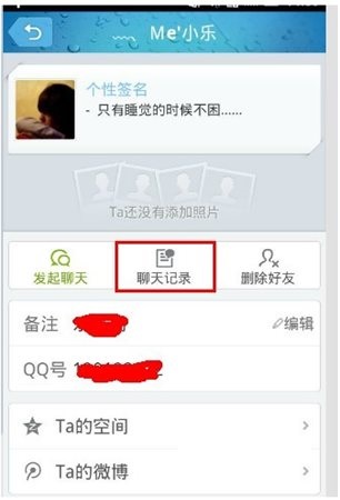 这里以安卓版本的QQ2012版本做示范好了。其他的版本基本都一样的操作方法,登录手机QQ之后找到所要删除聊天记录的联系人,然后点击进入对话。进入之后会看到一个聊天记录的按钮,点击进入