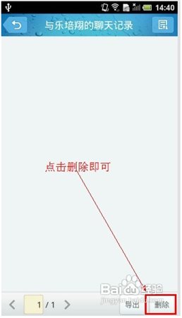 然后这里面就能看到所有你和这个联系人的聊天记录,我这里没有有聊天记录的显示,然后点击右下角的删除按钮就可以删除联系人的手机QQ聊天记录啦。