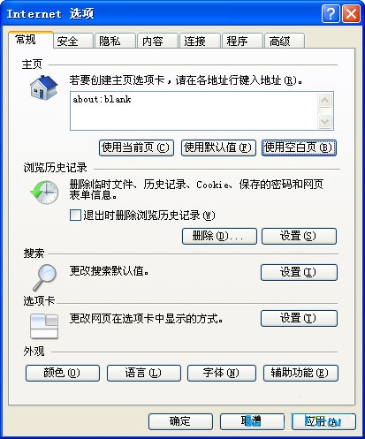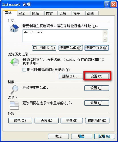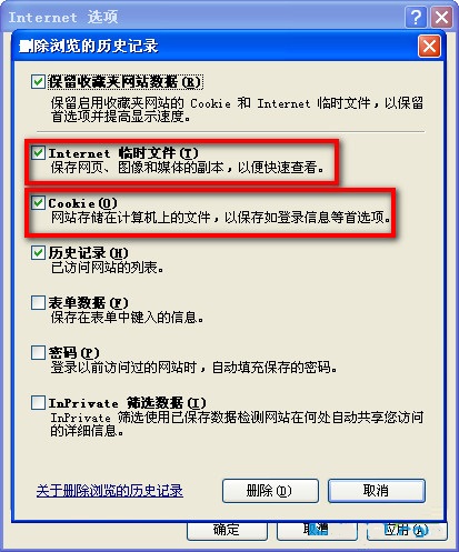 第二步、在“常规”中的”Internet临时文件夹“下,依次选择”删除cookies“和”删除Internet临时文件;