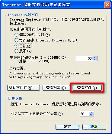 第三步、点击设置,点击设置窗口中的“查看文件”;
