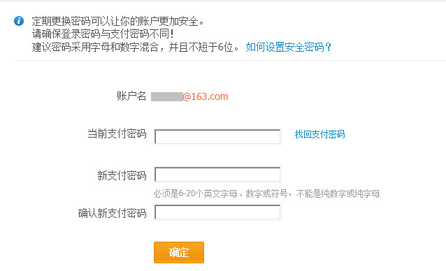 若您要修改支付密码,则回到之前的“账户信息”页面,点击“修改支付密码”链接,在弹出的窗口中依然输入当前密码及新密码和确认密码,完成后点击“确定”按钮即可修改支付宝支付密码。具体步骤为登录我的支付宝——【账户设置】——【安全设置】,点击支付密码一栏后方的【修改】按钮;