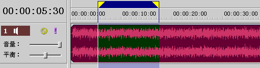 当音乐文件被打开以后,文件的波形图会显示在音乐编辑区中,显示的颜色状态可以区分为:被选中是的状态和没有被选中时状态