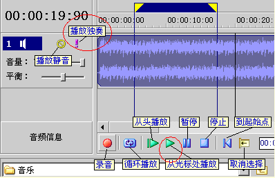 你可以在音乐编辑区用鼠标右击弹出的菜单中的选项“打开音频”来打开你要播放的音乐 文件: