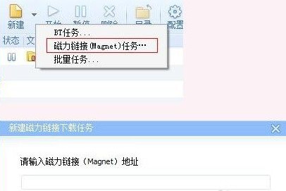2、如果你的迅雷没有开启,只能打开迅雷,点击新建按钮旁的“箭头”,选择“磁力链接任务”把复制的“磁力链接”填入弹出的输入框内,点击“立即下载”即可。