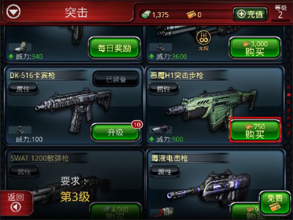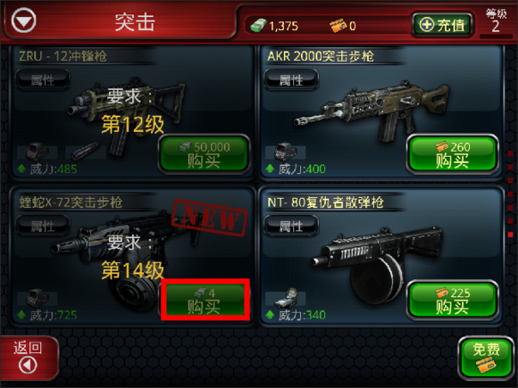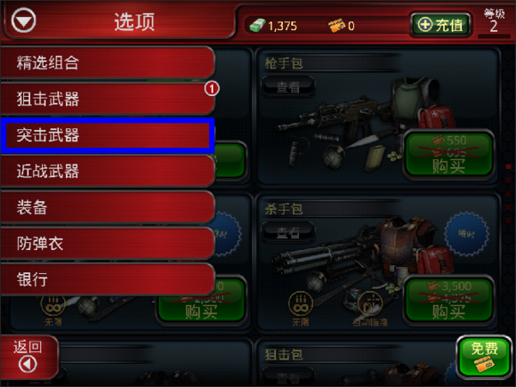 选择突击武器,在最下面找到价值300000钞票的枪。