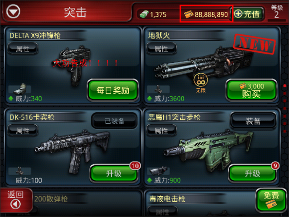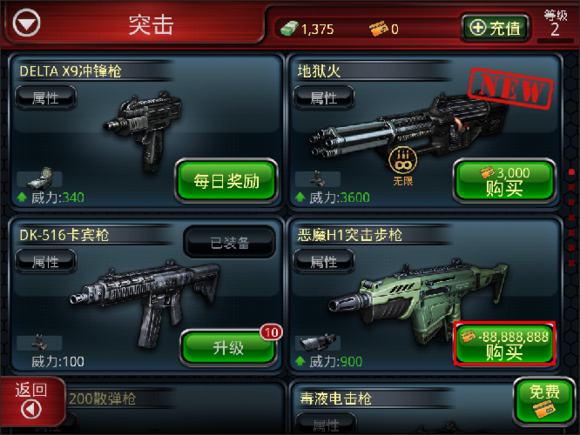 切换回游戏,刷新后,看到武器的价格变成了-88888888.