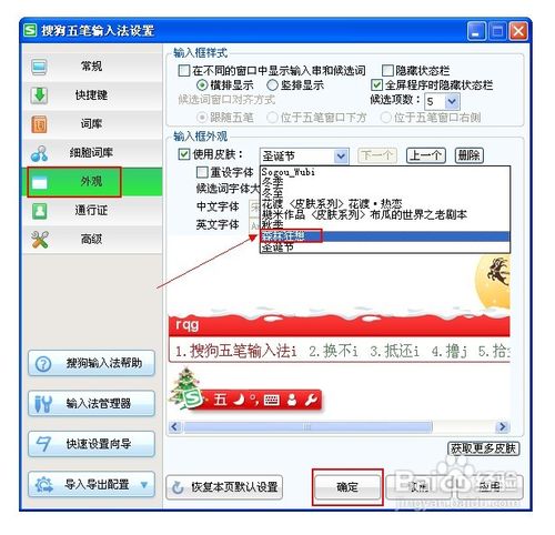 将已经下载好的搜狗皮肤拷贝到”AllSkin”文件夹下,然后打开搜狗输入法状态栏,右击选择“设置属性”,在打开的窗口中选择“外观”,然后选择从皮肤下拉列表框中选择刚才拷贝的皮肤,最后点击“确定”即可完成皮肤的更换和应用。