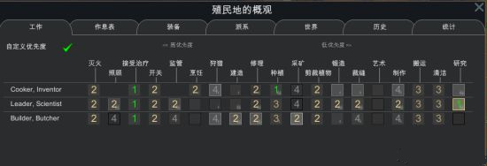 最后进入概况根据小人专长调整工作优先级,接受治疗最优先,其后灭火:
