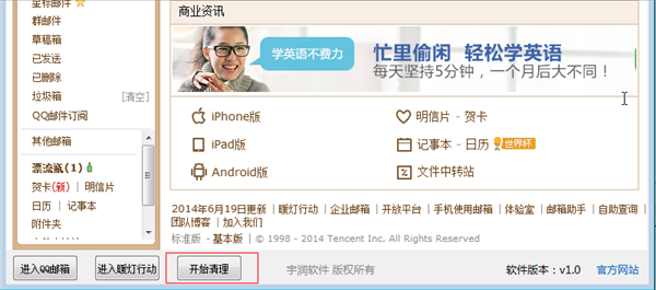 2、用此软件登陆QQ邮箱,点击“开始清理”即可自动清理。