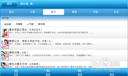 工具栏是首页,分类,排行,搜索,会员等,你想干什么直接点击即可跳转,如图所示是排行页面,对于不知道看什么书的你,是不是个很好的引导呢?