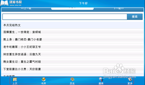 最下方的工具栏有你上次观看的记录,有你观看的历史,你的书库,搜索等等,还有更多选项,是用来设置的