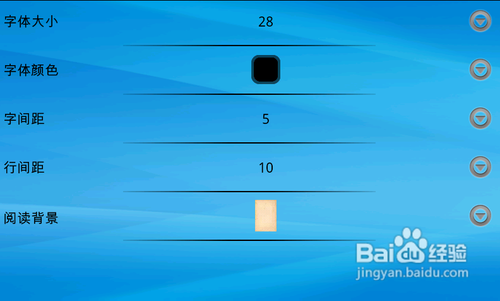 点击更多进入设置,这里可以设置明亮度和字体大小以及字体间距,很人性化和个性化