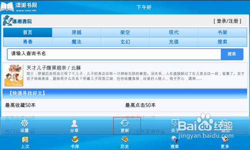 更新是检查你的潇湘书院软件由没有更新,增加新功能,有的话建议在wifi下更新软件