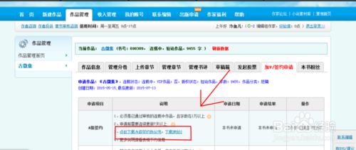 然后点击作品管理——加V/签约申请——下载A级签约书。