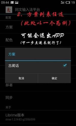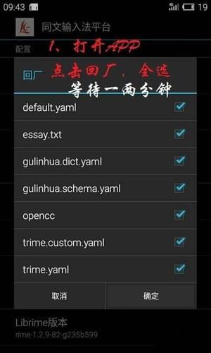 1、安装后只能打字母,怎样才能打中文?答:在sdcard/rime目录添加default.yaml,essay.txt,xxx.schema.yaml,xxx.dict.yaml,然后重新部署。