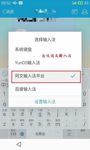 4、以下便是通常切换输入法方式了,设置里选择同文输入法或者输入状态选择输入法。